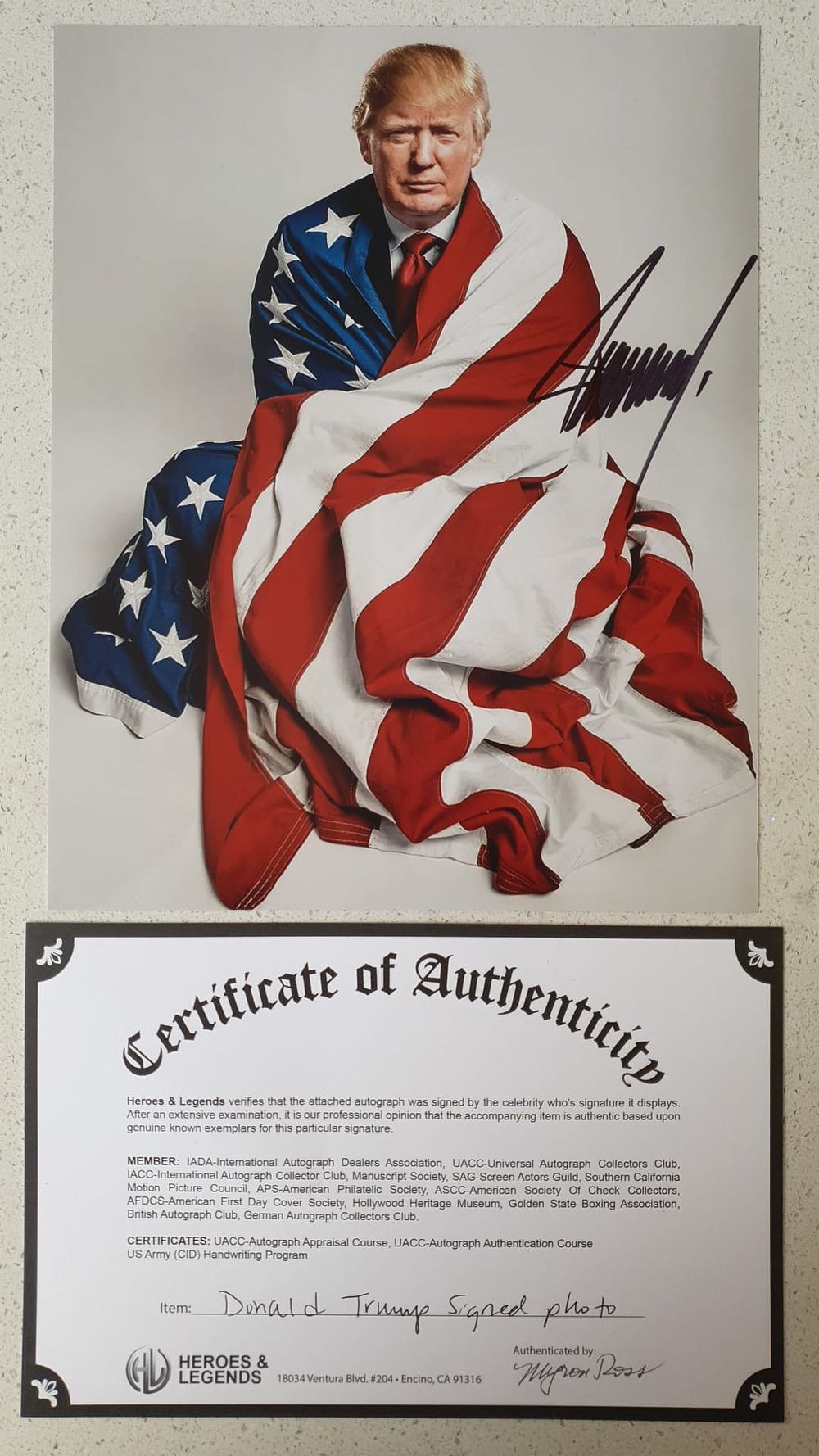 Donald Trump Signed Patriotic Photo – Heroes & Legends COA – Autographed Photograph